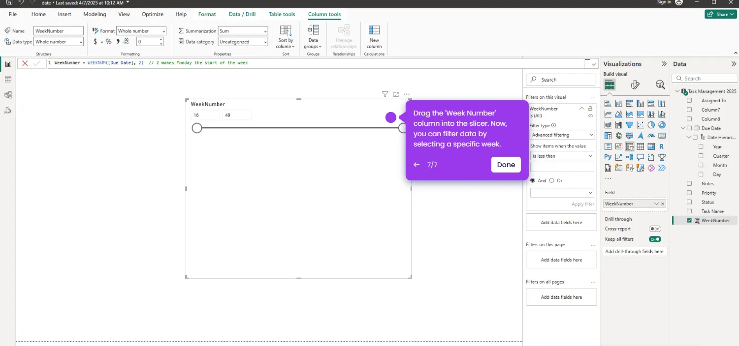 How to Filter by Week in Power BI