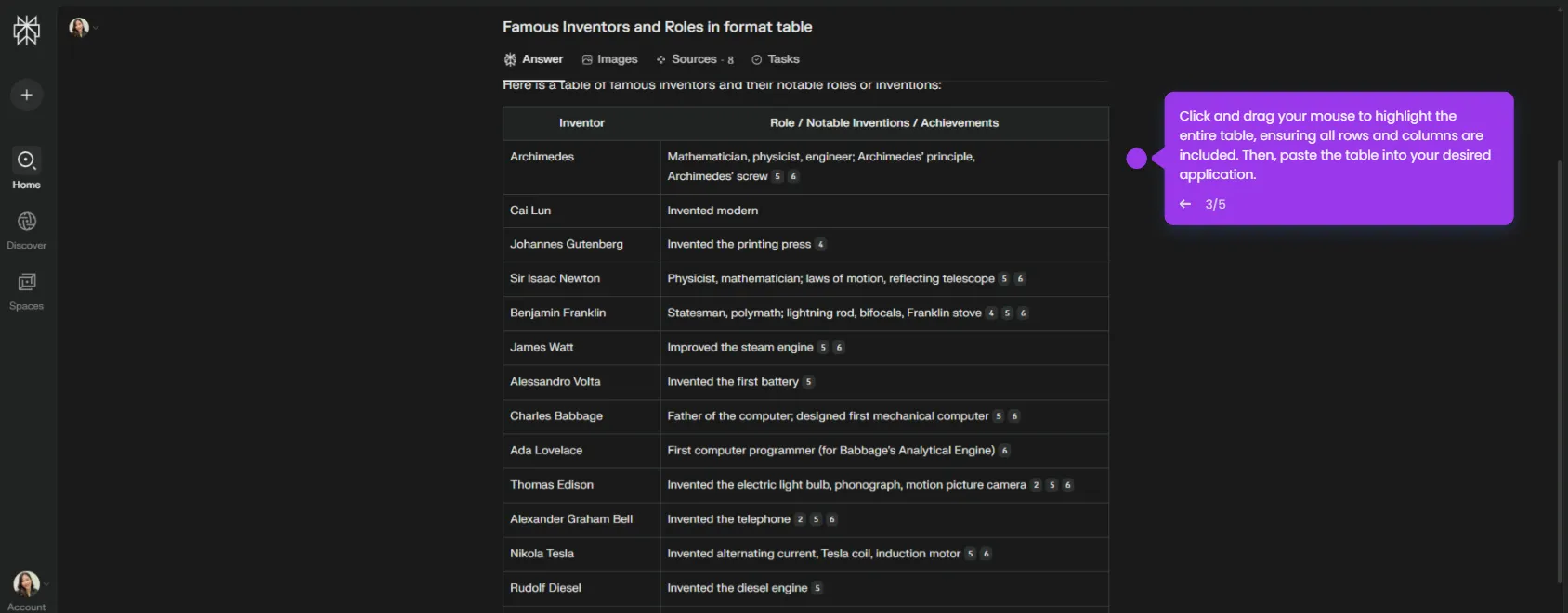 How to Copy Table from Perplexity AI