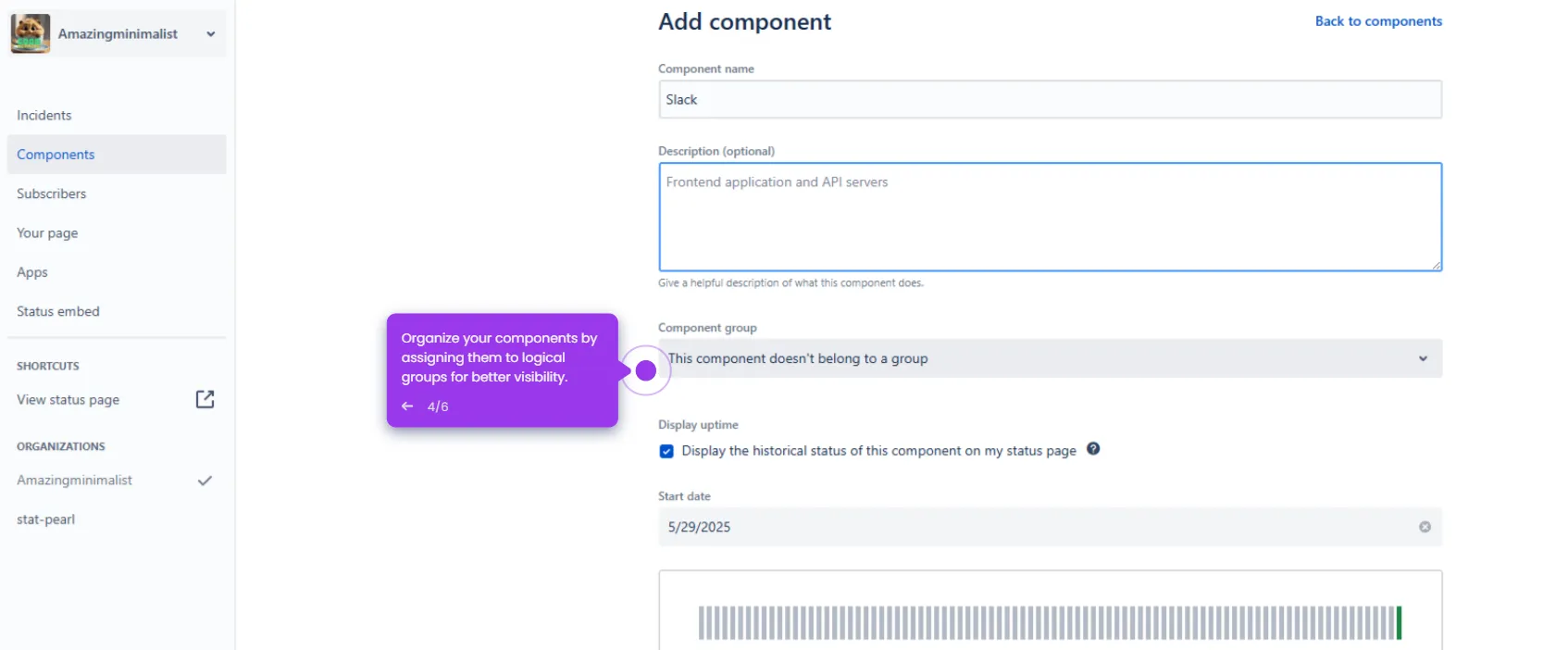 How to Add Site to Statuspage for Slack Customer